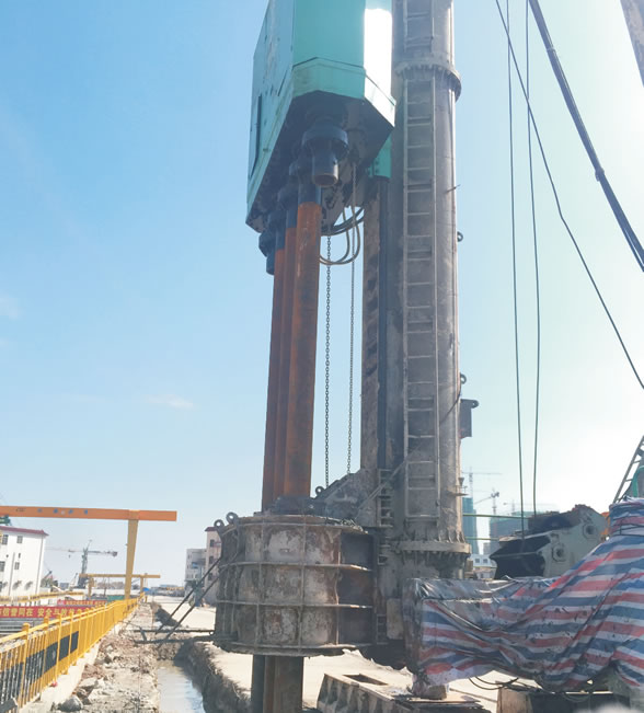 HY系列多軸式連續(xù)墻鉆孔機是應用于SMW工法的新一代地基加固施工設(shè)備,達到國際先進水平,具有完全自主知識產(chǎn)權(quán),可廣泛應用于高層建筑、地鐵車站的深基坑圍護,江河堤壩的防滲加固和軟土地基的改良加固。     采用變頻器控制電箱,啟動時對電網(wǎng)沖擊小,節(jié)能安全,有故障自檢及自我保護功能;     三電機并五軸聯(lián)動,動力能均分,850鉆機每根鉆桿動力均在66kw以上,700鉆機每根鉆桿動力均在54kw以上,遇復雜地質(zhì)可自動實行各鉆桿間動力互補;配套96000扭米減速機。     可根據(jù)需要停用一個電機,更環(huán)保節(jié)能;     個性化使用,可根據(jù)需要改為三軸、單軸鉆機使用;     動力頭設(shè)計外形結(jié)構(gòu)緊湊并采用機架裝配式;     高品質(zhì)零配件,使用長效,安裝維修便利;     專業(yè)售后服務團隊,使用更安心無憂。 | 項目 | 單位 | HY220/70-5 | HY330/85-5 |  | 鉆孔直徑 | mm | Φ700×Φ700×Φ700 | Φ850×Φ850×Φ850 |  | 鉆孔個數(shù) | 個 |  |  |  | 電動機功率 | kW | 220(110×2) | 330 (110×3) |  | 鉆桿額定轉(zhuǎn)度 | r/min | 21 | 26 |  | 鉆桿額定扭矩 | kN·m | 28.5 | 40.4 |  | 鉆桿直接及壁厚 | mm | Φ219×22 | Φ273×25 |  | 鉆桿中心距